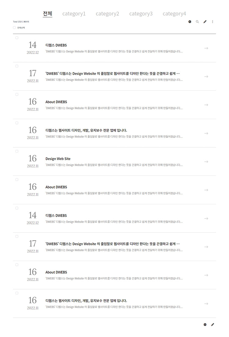 다양한 업종의 홈페이지 제작 경험을 바탕으로 업체분들이 가장 선호하시는 유형의 게시판 스킨을 미리 준비하였습니다.
